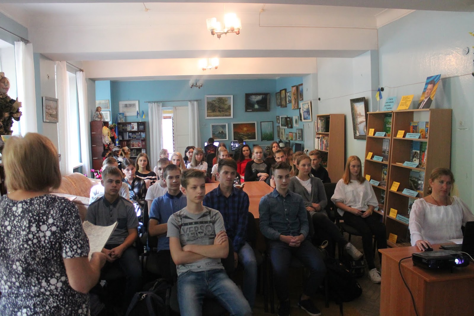 За традицією 21 вересня 2018 року в ЦМБ ім. М.Островського відбулася екскурсія для учнів 9-А класу природничо-математичної ЗОШ №11 (класний керівник Софія Миколаївна Фісенко) Екскурсію провела бібліотекар юнацького абонементу В.В.Жданова.