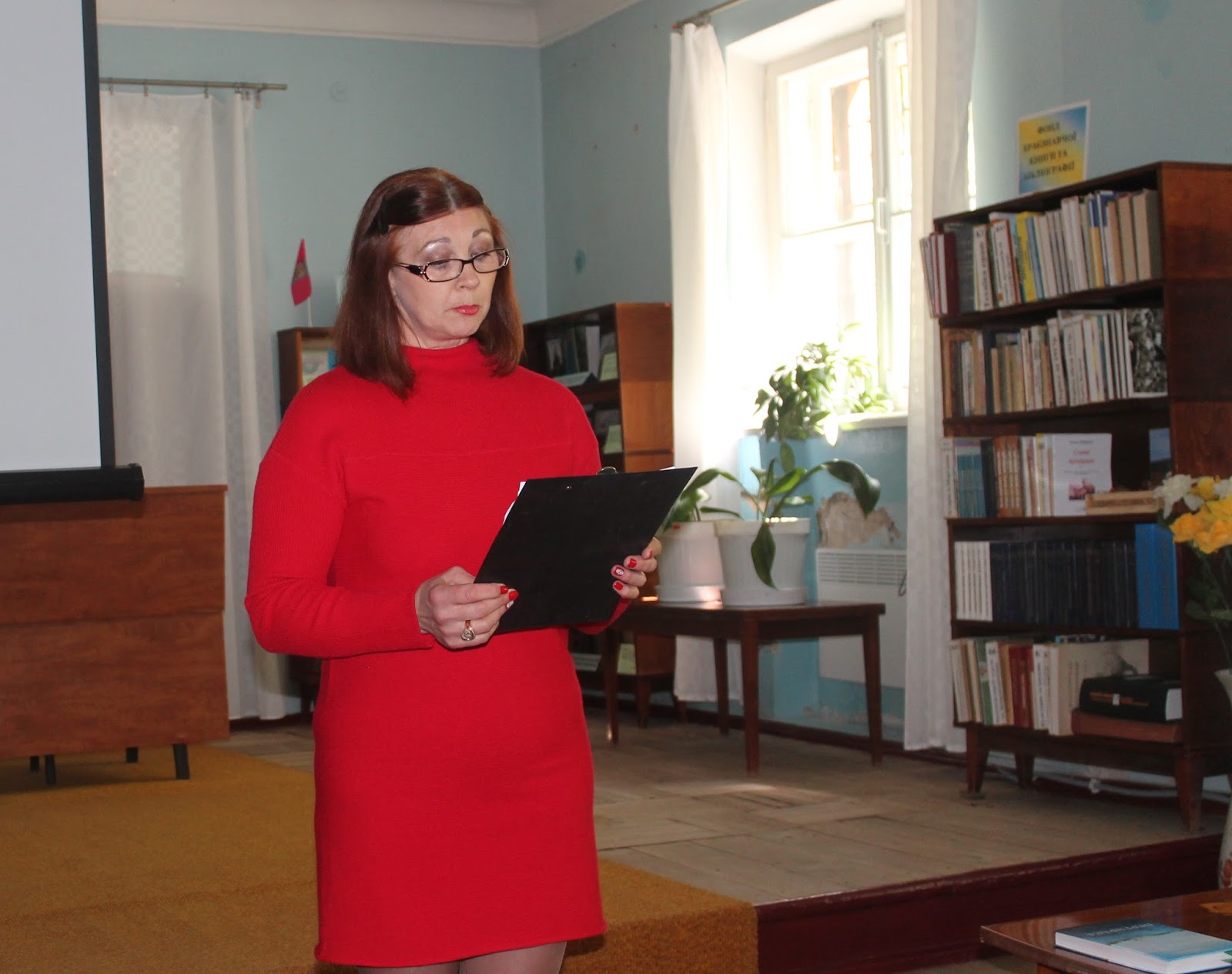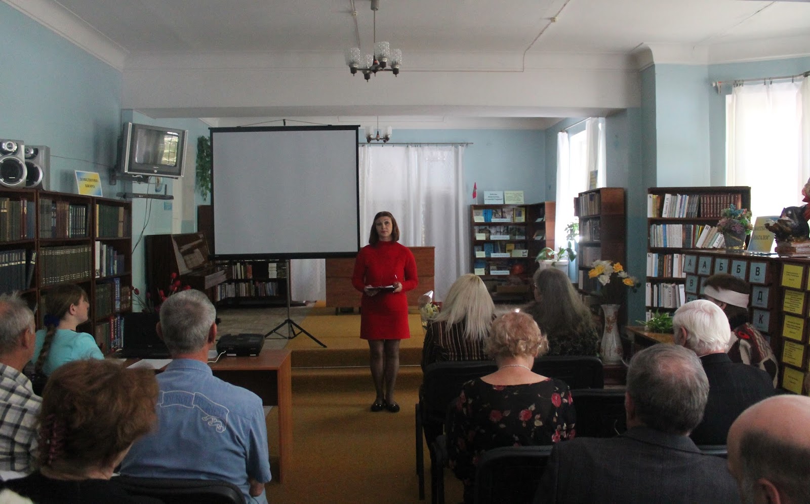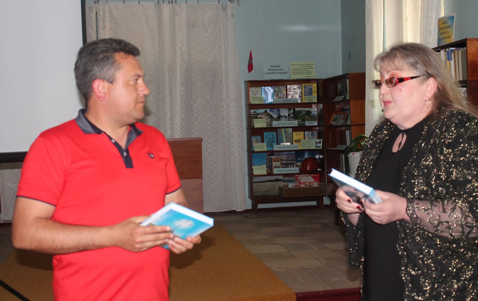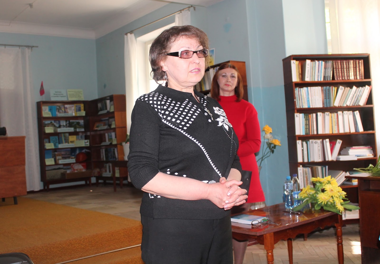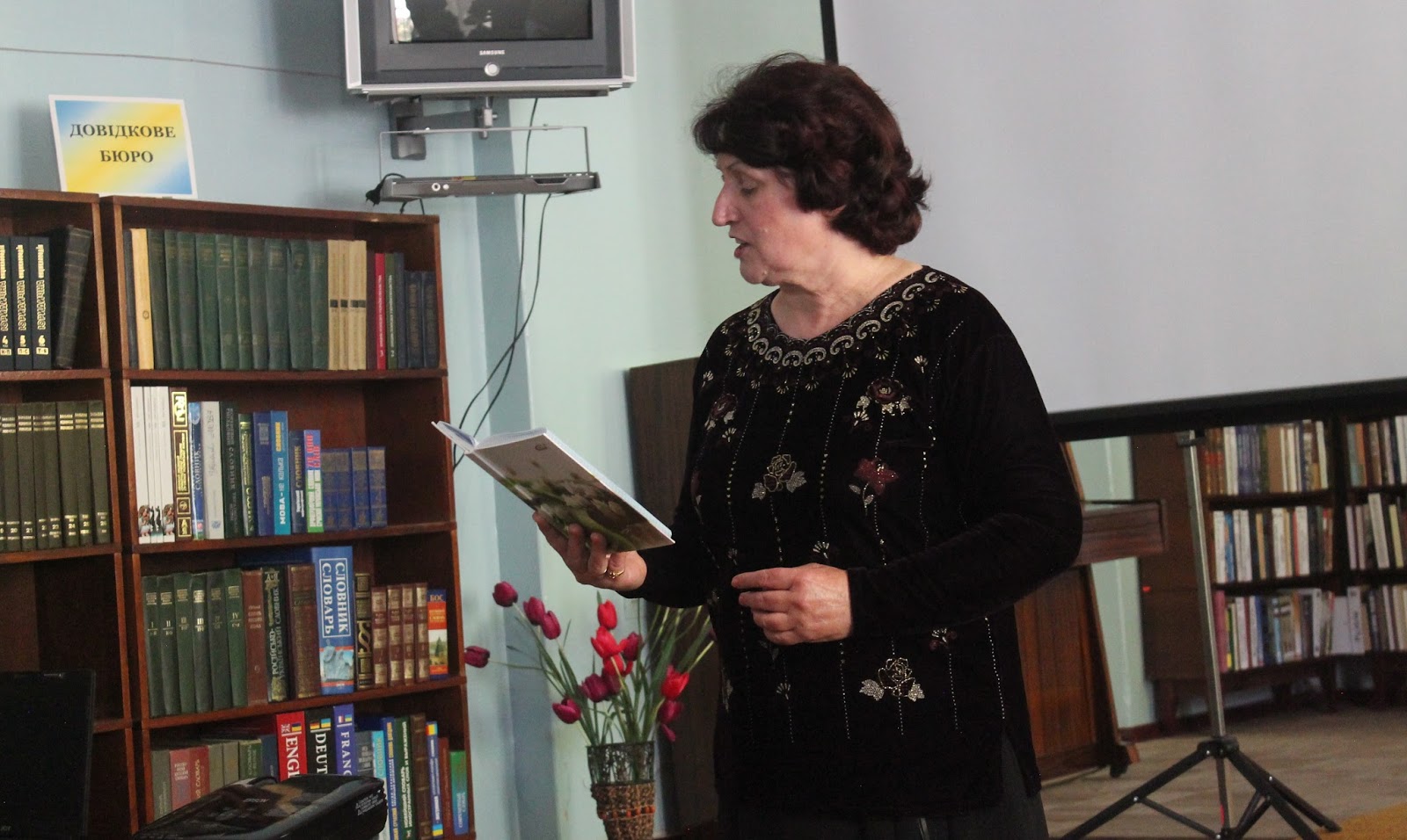 Відкрила читацьку конференцію Марина Олександрівна Новосьолова, начальник відділу культури виконкому Марганецької міської ради. Марина Олександрівна привітала усіх присутніх в залі та подарувала квіти сестрі Анатолія Антоненко – Людмилі Григорівні.