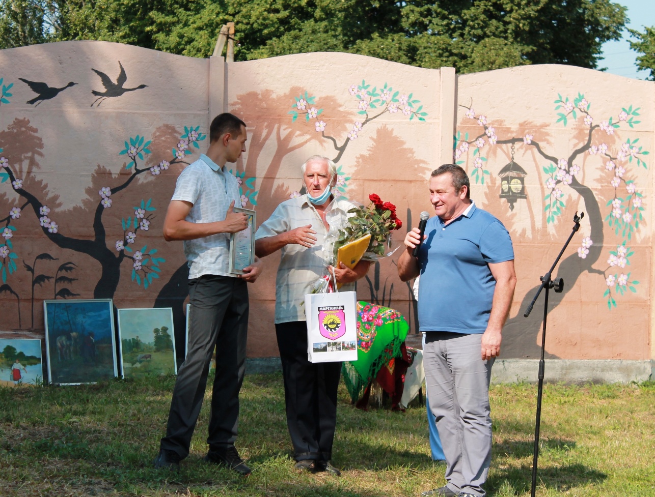 З присутніми на святі спілкувалися марганецькі поети: Штабенко І.П., Должиков Я.І., Онуфрієнко В.Г., письменник-вчений Лаар О.К., музиканти, подружжя Тетяна та Віктор Рабійчук.