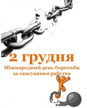 Щороку 2 грудня за рішенням Генеральної Асамблеї ООН відзначається Міжнародний день боротьби за скасування рабства. Саме цього дня 1949 року на 4-й сесії Генасамблеї ООН було прийнято Конвенцію про боротьбу з торгівлею людьми і з експлуатацією проституції третіми особами. Для України документ набрав чинності 15 лютого 1955 року.