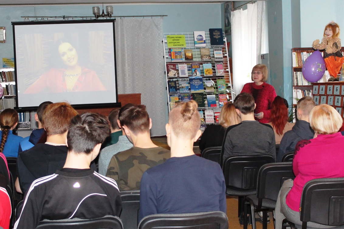 Провідний бібліограф ЦБС Ольга Забенько підготувала до заходу слайд-презентацію та відеоуривки. Найбільше присутніх зацікавив відеоролик про цікаві факти щодо української мови.