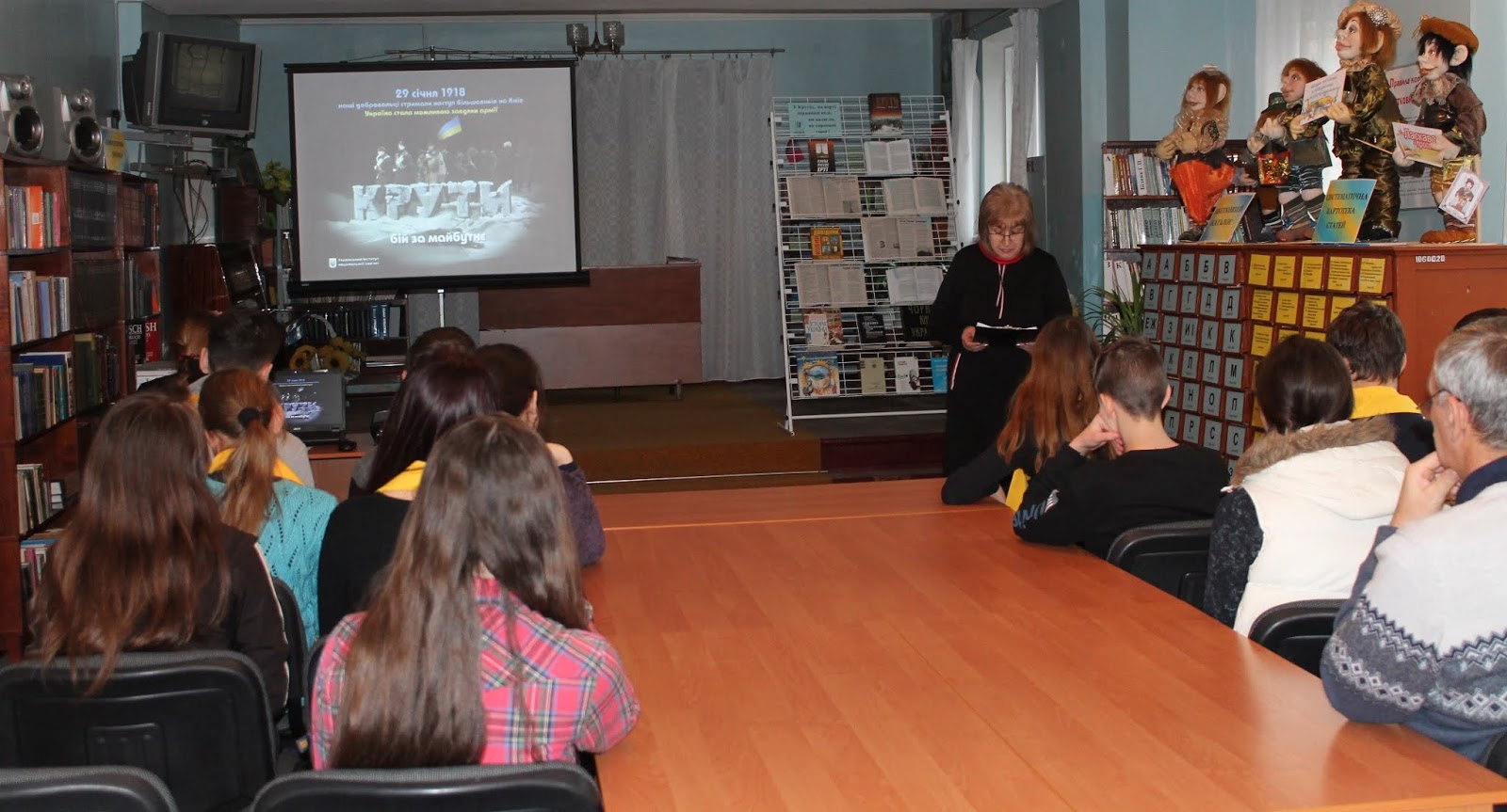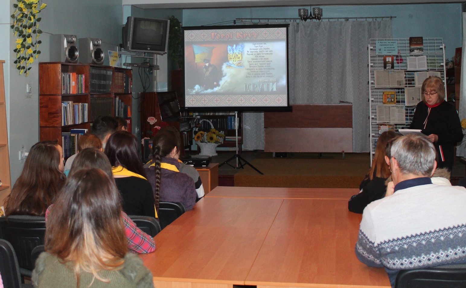 Ведуча заходу, бібліотекар ЦМБ Вікторія Жданова розповіла про те, які події відбувалися в далекому січні 1918 року.