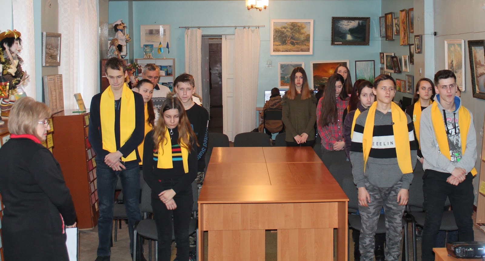 Пам'ять юних героїв, що мужньо віддали своє життя за вільну Україну, присутні вшанували хвилиною мовчання. На згадку про зустріч у бібліотеці всі разом сфотографувалися.