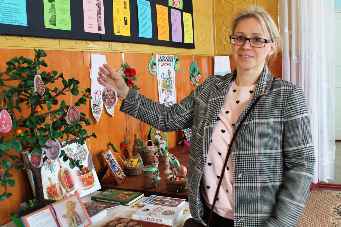 Користувачам складно було пройти, щоб не подивитися мистецькі роботи великодньої тематики, виготовлені майстринею Ольгою Шаляпіною: вишиті картини-ікони, вишиті бісером рушники, декоративні великодній куліч і вербові гілочки, композації та пано з квітами і птахами, а також декоративні писанки.