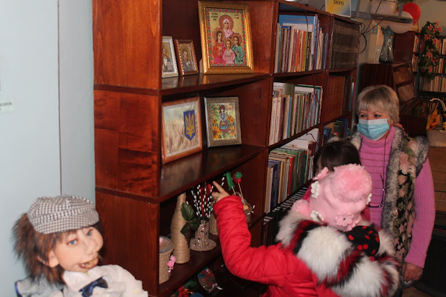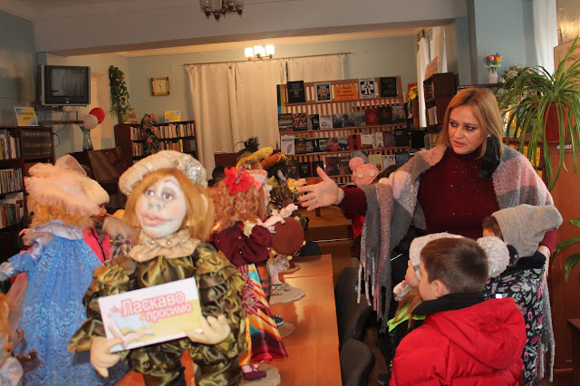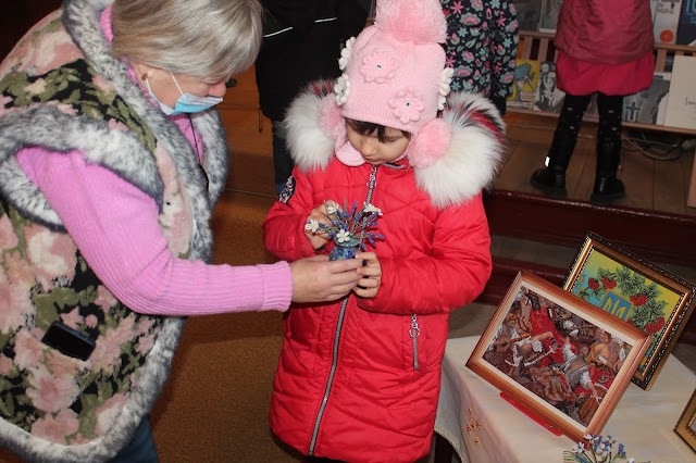 Напередодні свята до бібліотеки завітали учні 1-Б класу ПМШ №11 (кл. керівник Шамрай Н.В.), щоб познайомитися з виставками робіт наших майстринь: Галини Карпенко, Ольги Шаляпіної та Олени Рак, а також з самими майстринями.